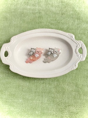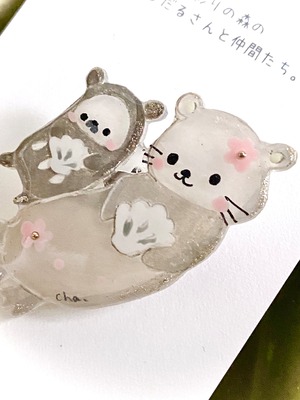 水にぷかぷか浮かぶラッコさんとだるだるさんの姿は、見ているだけでほっこり。胸元やバッグにゆるやかな癒しの風を届けてくれます。