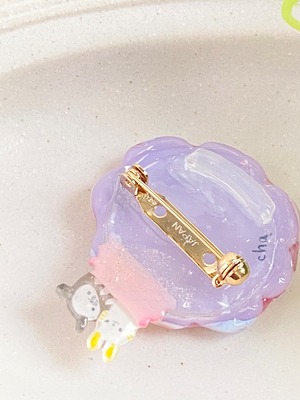 ガラスとプラ板を合わせたブローチは、