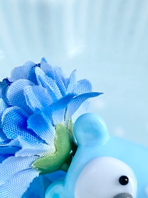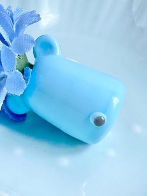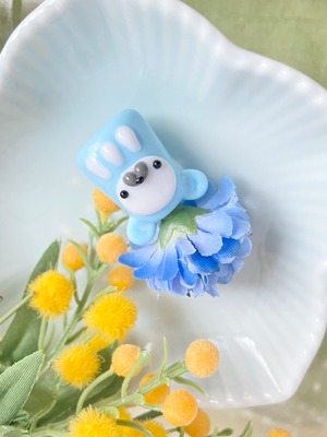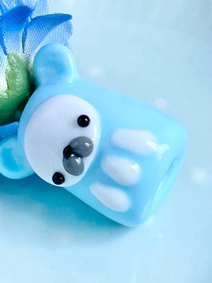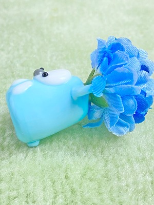 だるだるさん→優しい水色ベビーブルー キナリガラスcx60(体)、口たぶ(グレー)、だるだる身長4センチ(お花含む上から下まで)、だるだる体重10g