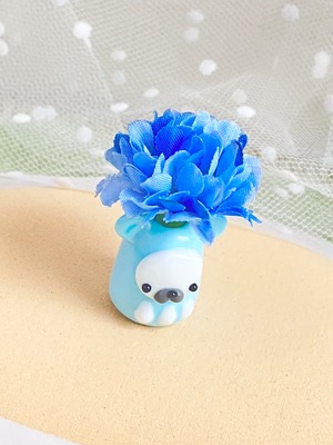 ☆ひなた様ご注文分☆『ベビーブルーだるだる 青ポンポンのお花の帽子をかぶって』置物